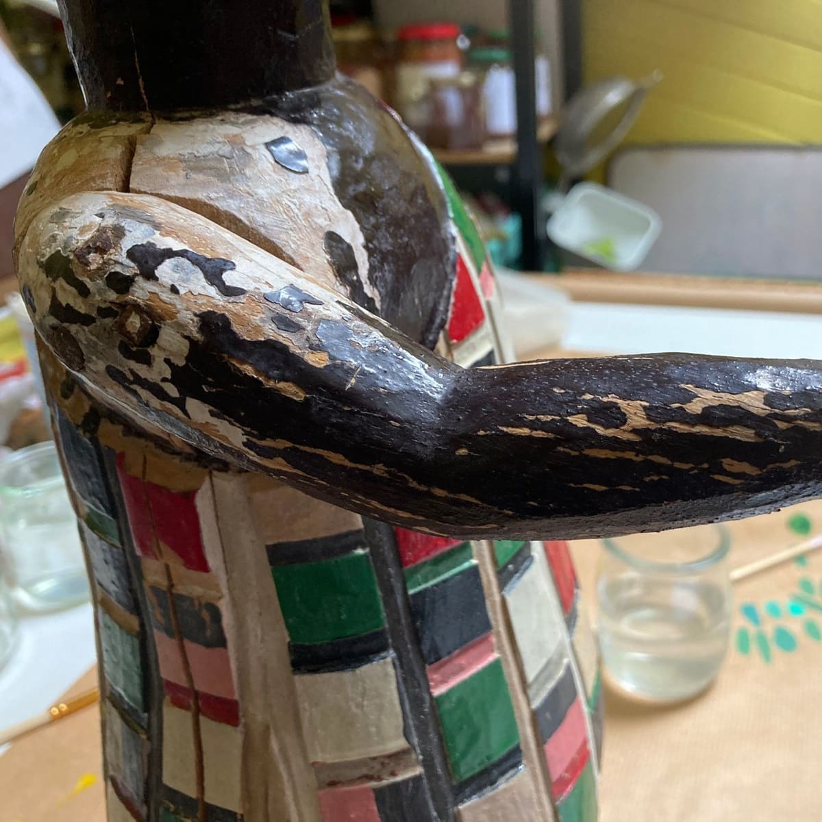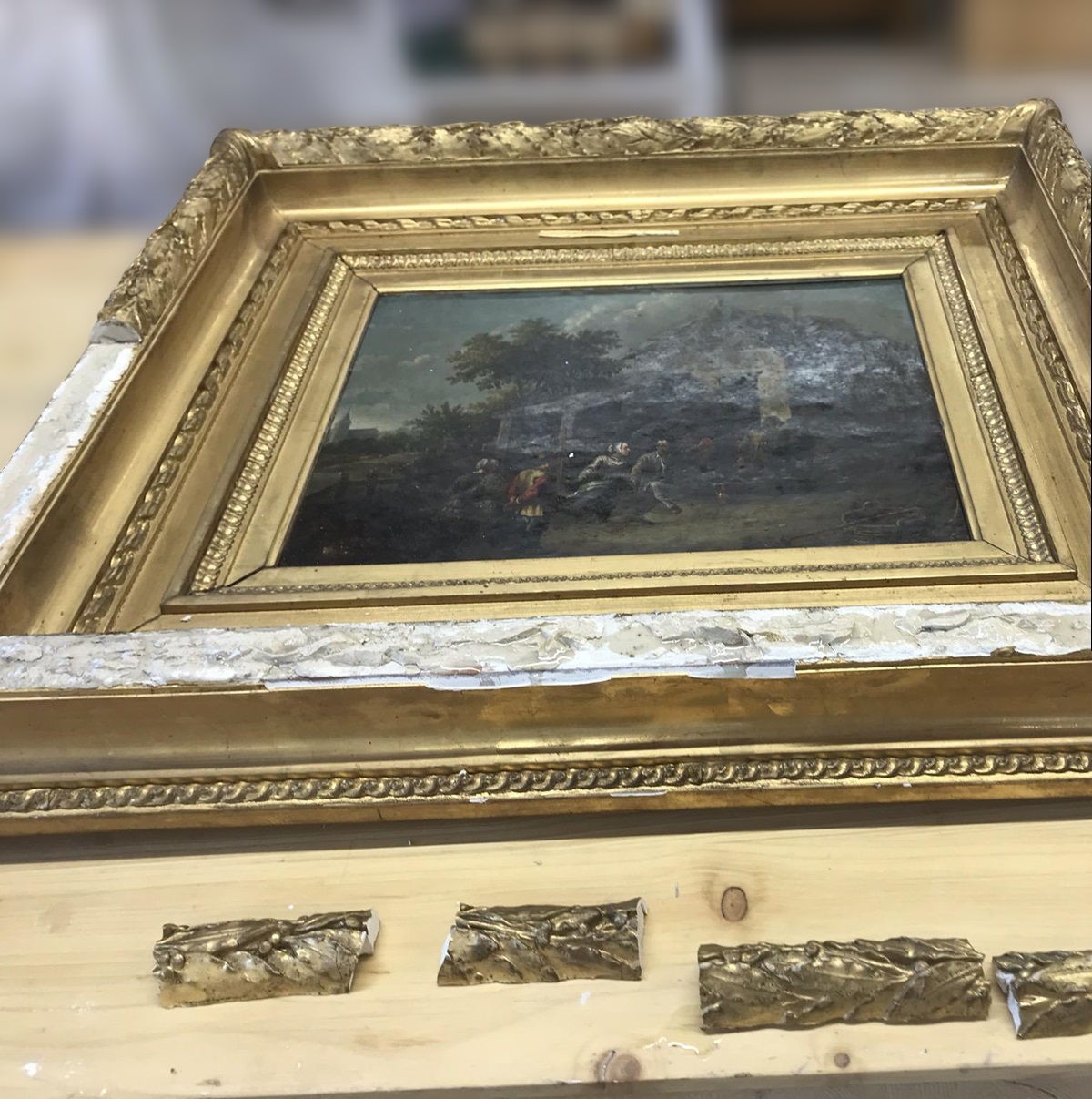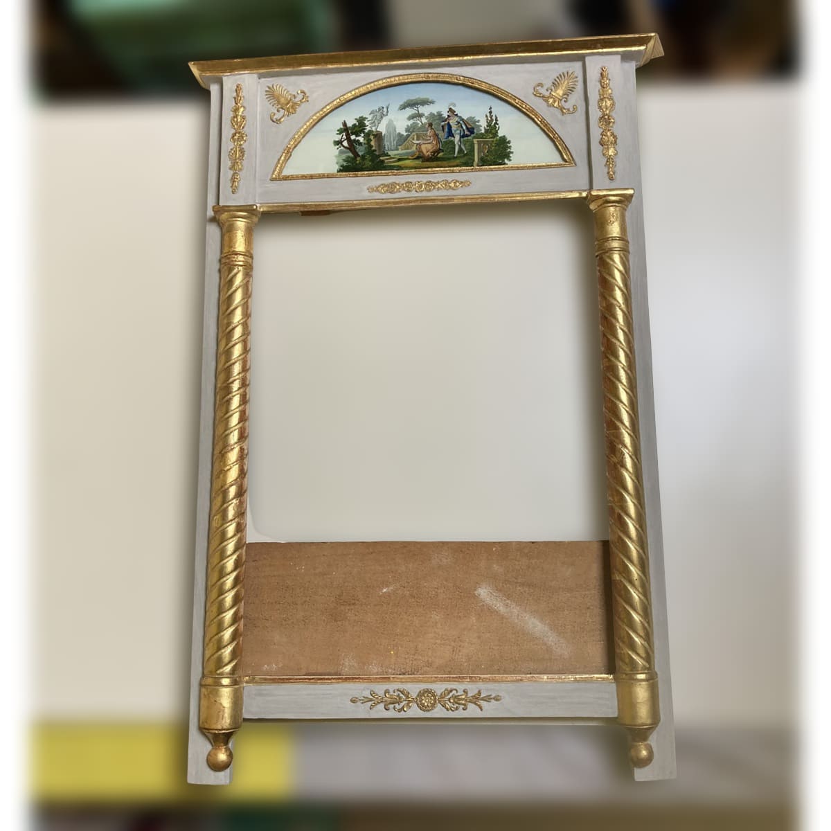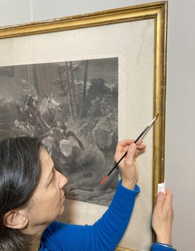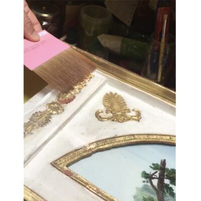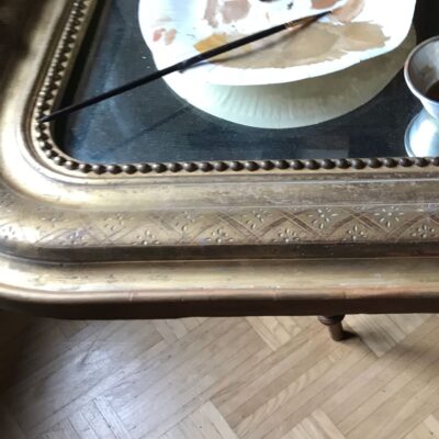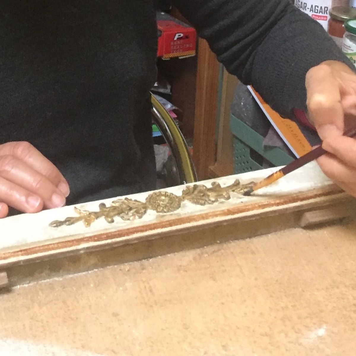 Après des études d’Histoire de l’Art et une belle expérience dans la reliure traditionnelle, j’ai suivi une formation en dorure et polychromie sur bois. Dans le respect de la déontologie et de la tradition, je restaure tout objet en bois doré et/ou peint, tels que des miroirs, cadres, statues, fauteuils, etc.