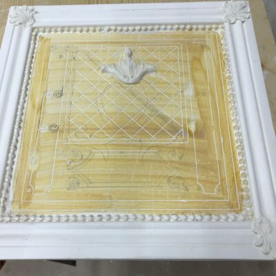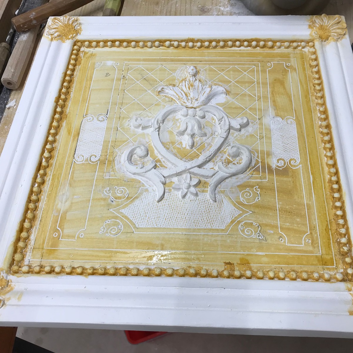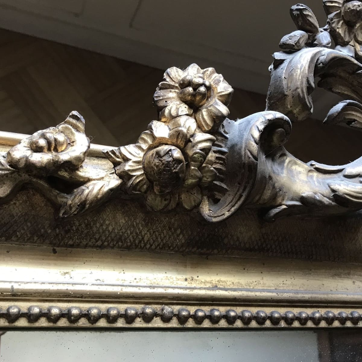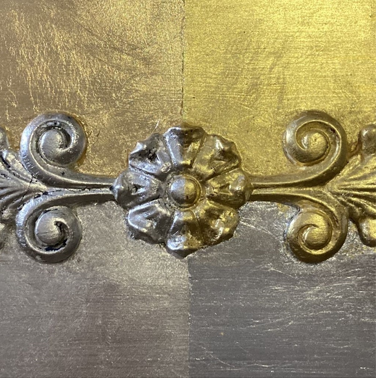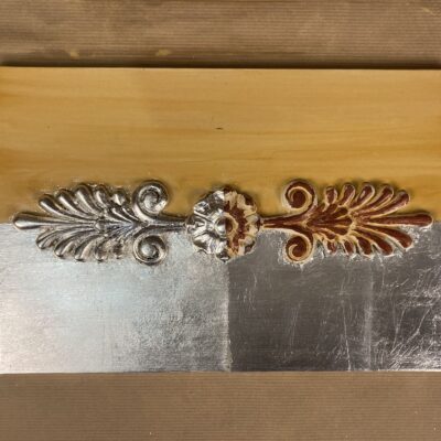 La patine quant à elle est une altération naturelle ou artificielle de la surface d’un objet, lui procurant le charme, l’authenticité et la trace de son histoire. Grâce à divers procédés pour imiter l’usure du temps, la feuille d’or fraîchement posée est fondue sur la dorure vieillie. La patine adoucit les contrastes en soulignant discrètement les impacts sur le bois. Sur une création, elle donne à la feuille d’or une grâce surannée.